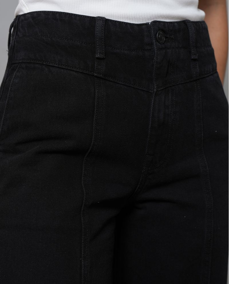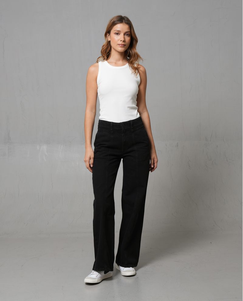 Diseñado para destacar, este jean Wide Leg en 100% algodón combina un tono negro profundo con una silueta moderna: ajustado en cintura, semiajustado en cadera y amplio en rodilla y bota. La pretina con cortes en V y los cortes en frente le suman carácter, mientras los bolsillos de parche en la parte posterior completan un look urbano y versátil. *La modelo usa un jean talla 6. *Algunas pantallas pueden alterar el color real de la prenda.
