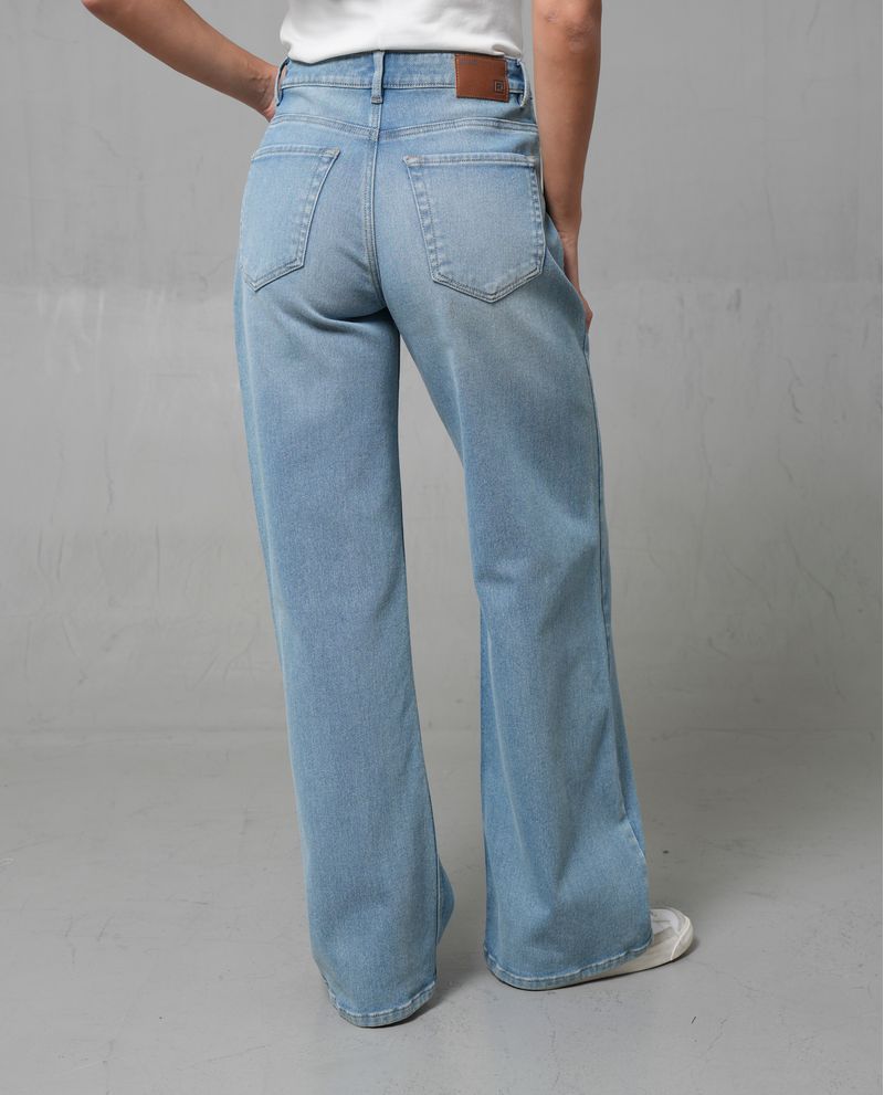 Este jean Wide Leg para mujer en tono claro es ideal para quienes buscan comodidad y estilo en una sola prenda. Con cinco bolsillos, pasadores en pretina y cierre con botón, se convierte en un básico moderno para tus outfits. Perfecto para looks relajados, combínalo con camisetas o crop tops y completa con tenis para un estilo juvenil. *La modelo usa un jean talla 6. *Algunas pantallas pueden alterar el color real de la prenda.