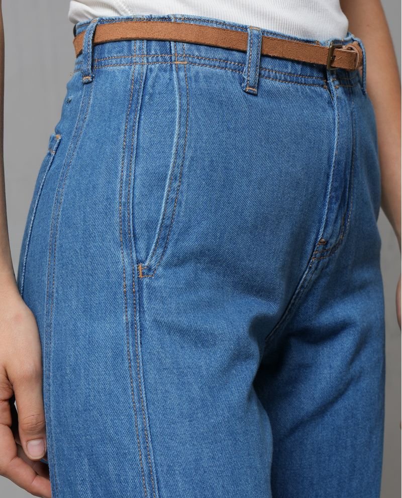 Con un fit semiajustado en la cadera y amplio en la rodilla, este Wide Leg jean resalta por su comodidad y silueta moderna. Los bolsillos laterales y de parche en la parte posterior, junto con los cortes decorativos, le añaden carácter, mientras que el lavado en tono medio lo convierte en un básico versátil. Incluye cinturón para darle un cierre completo al look. *La modelo usa un jean talla 6. *Algunas pantallas pueden alterar el color real de la prenda.