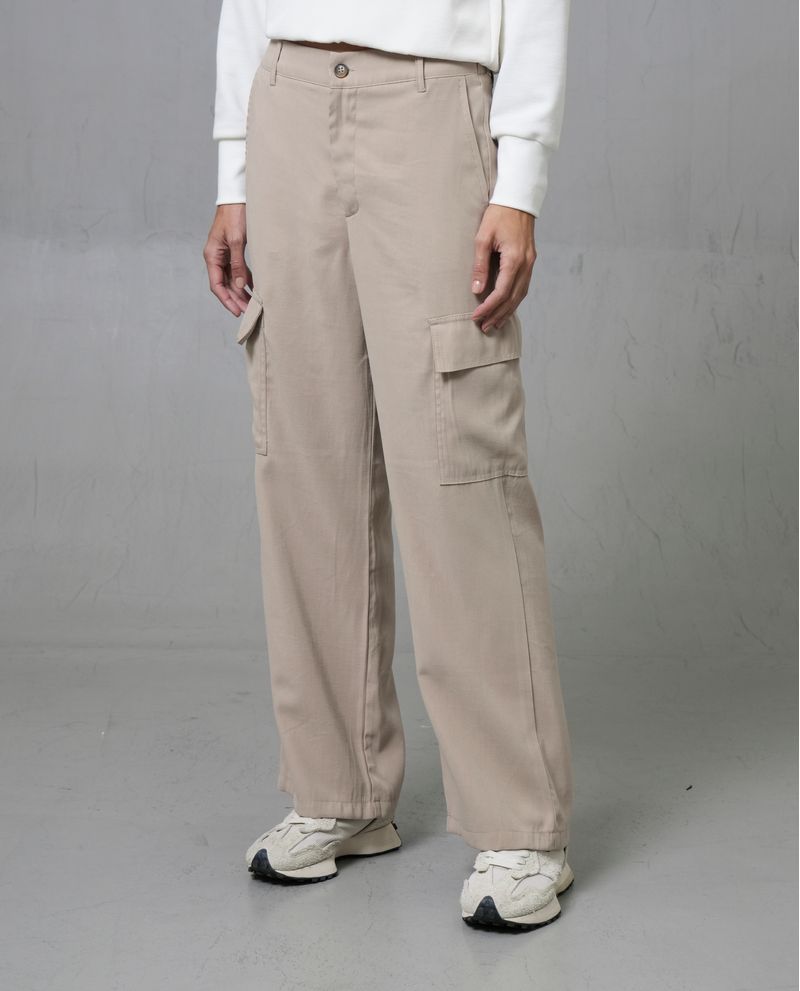Características: Diseño cargo con corte relajado, tiro alto y bota recta. Incluye bolsillos funcionales y presillas para cinturón.