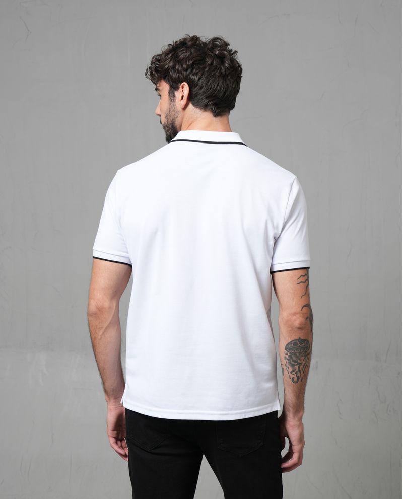 Esta polo comfort fit en tejido piqué para hombre combina comodidad y estilo con detalles que marcan la diferencia: cuello y mangas con tipping en contraste, perilla de botones y una elegante R bordada en punto corazón. Ideal para elevar cualquier look, desde el más casual hasta el más sofisticado. *El modelo usa una polo talla L. *Algunas pantallas pueden alterar el color real de la prenda.