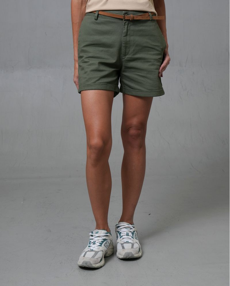Este short es una prenda esencial en el armario de cualquier mujer. Confeccionado con una mezcla de 82% algodón, 16% poliéster y 2% elastano, ofrece un ajuste clásico y cómodo que se adapta de manera natural a las piernas. Su diseño recto proporciona un look limpio y estructurado, ideal para cualquier ocasión casual. Los dobladillos están limpios y reforzados, asegurando durabilidad. La prenda cuenta con costuras visibles dobles, cremallera y presillas para cinturón en la pretina, con un cierre de un solo botón.