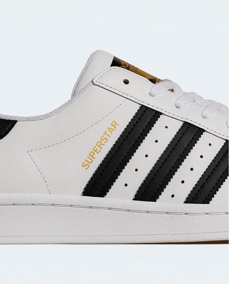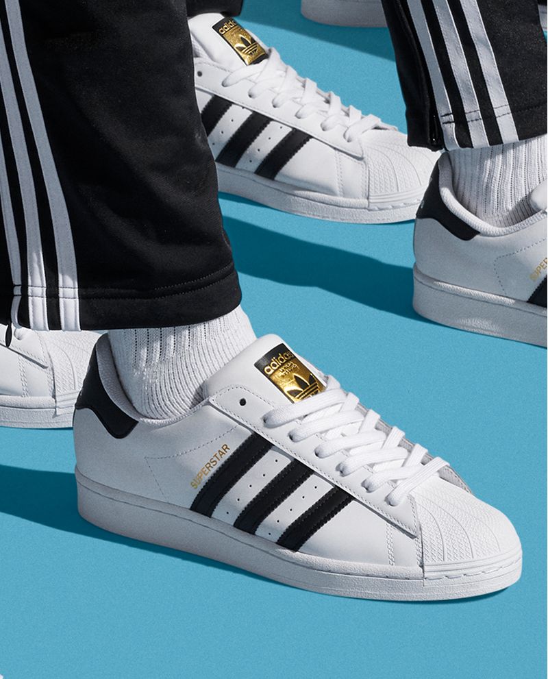 Tenis Adidas para hombre. Diseño clásico Superstar de cuero. Estilo con rayas, logo cuadrado y puntera con relieve. *Algunas pantallas pueden alterar el color real de la prenda.