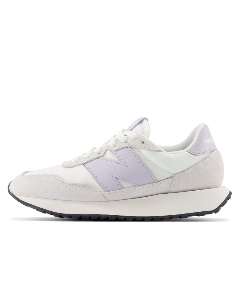 Tenis para mujer. New Balance 237 de estilo clásico y vintage. De tonalidades claras con superior en ante y malla satinada. Cuentan con sistema de ajuste de cordones y amortiguación en EVA. *Algunas pantallas pueden alterar el color real del calzado.