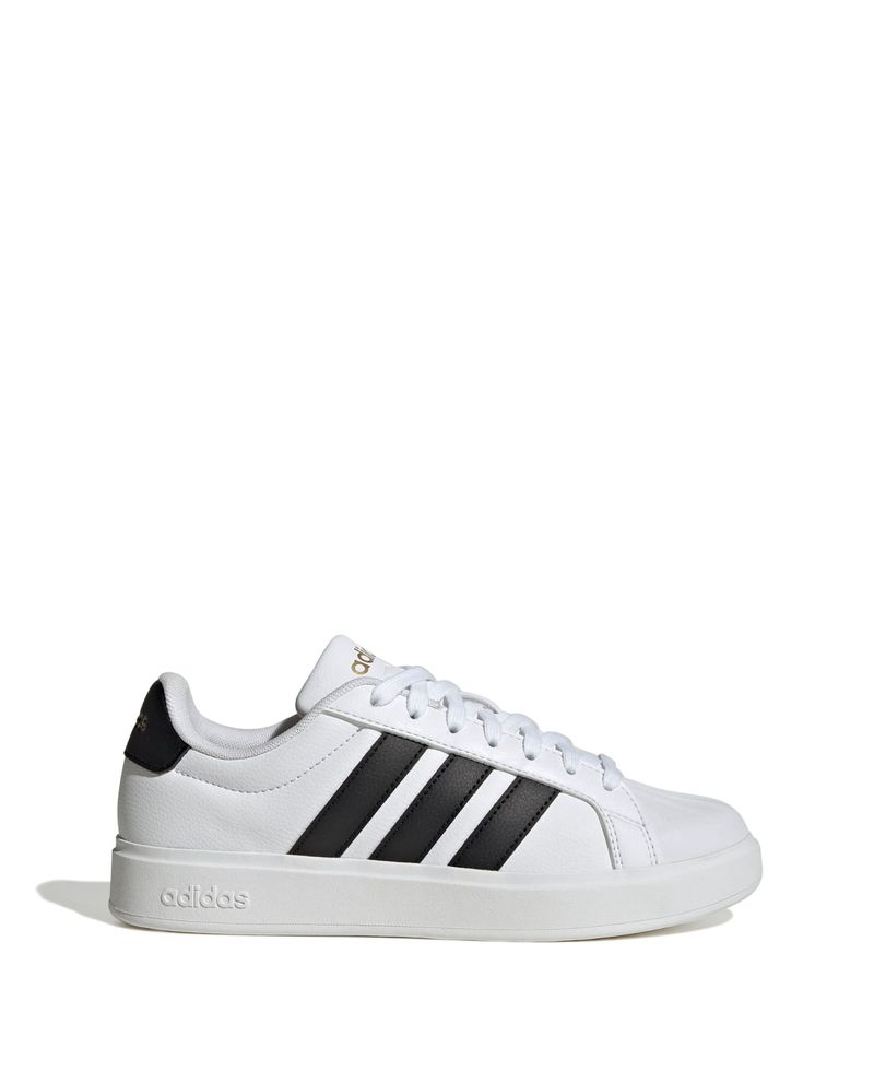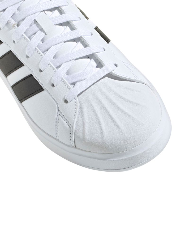 Características: Diseño atemporal, silueta deportiva clásica, tres bandas negras icónicas, cordones blancos ajustables, costuras limpias y reforzadas.