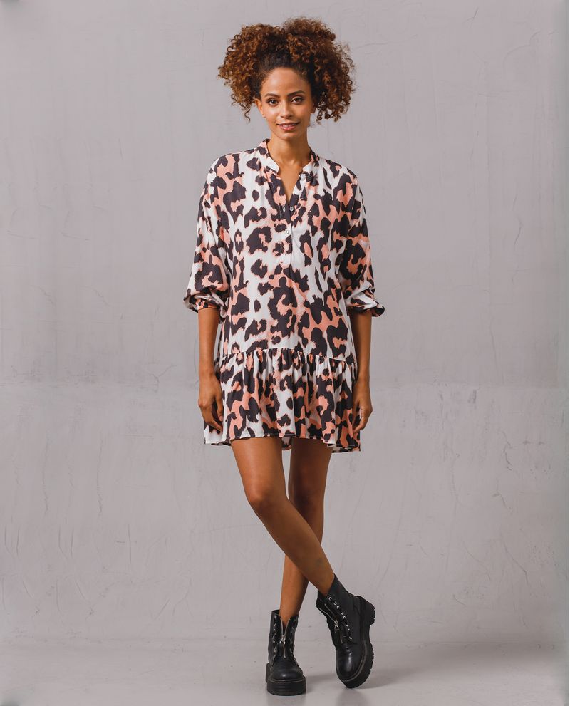 Vestido para mujer. Diseño corto de manga larga con estampado de animal print. Cuenta con bolero en ruedo y media perilla de botones. Llévalo con botas o tenis. *La modelo usa un vestido talla S. *Algunas pantallas pueden alterar el color real de la prenda.